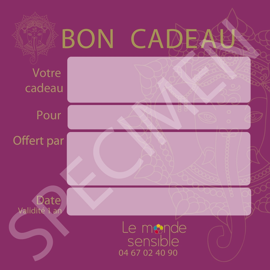 Peut être offert à la personne de votre choix (sur simple information au Monde Sensible)
